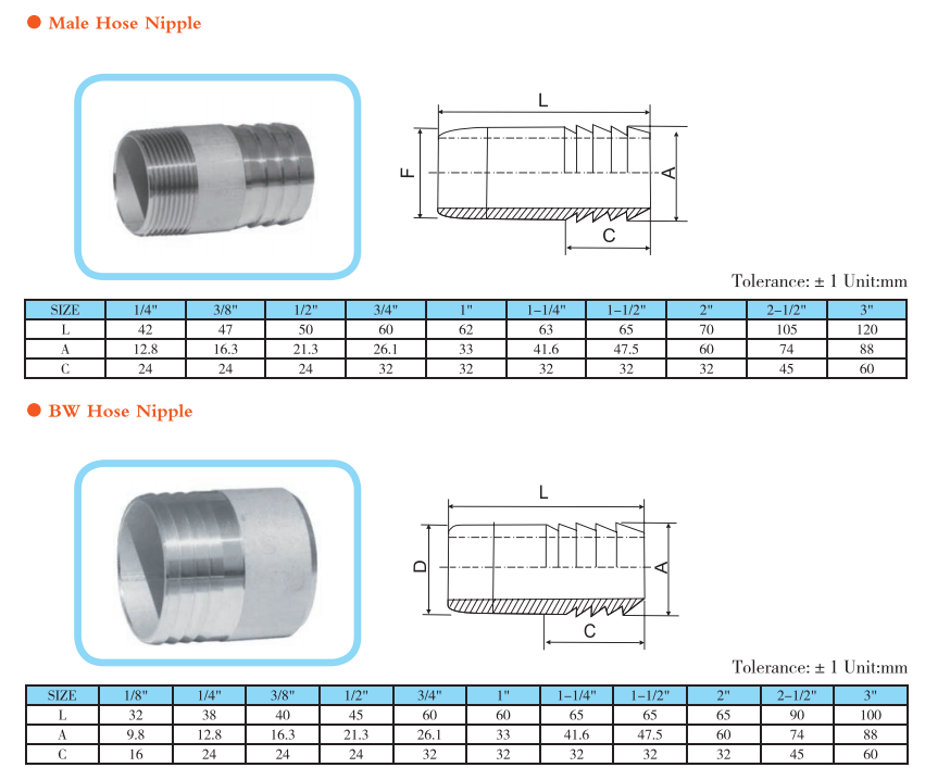 用于液壓油路、氣壓管路快速連接的接頭。一般分為寶塔公插頭和寶塔母插頭兩類。適用于以油、水、空氣為介質的場合。裝卸方便,性能可靠。 螺紋標準有NPT BSPT ISO G螺紋。 加工方式分為套絲加工和數控加工,優質質量,價格有競爭力,品質保證。 管子規格尺寸齊全,支持加工定制,標識打字。 可出口包裝,也可根據客戶要求小包裝,供貨于國內外大型超市批發。