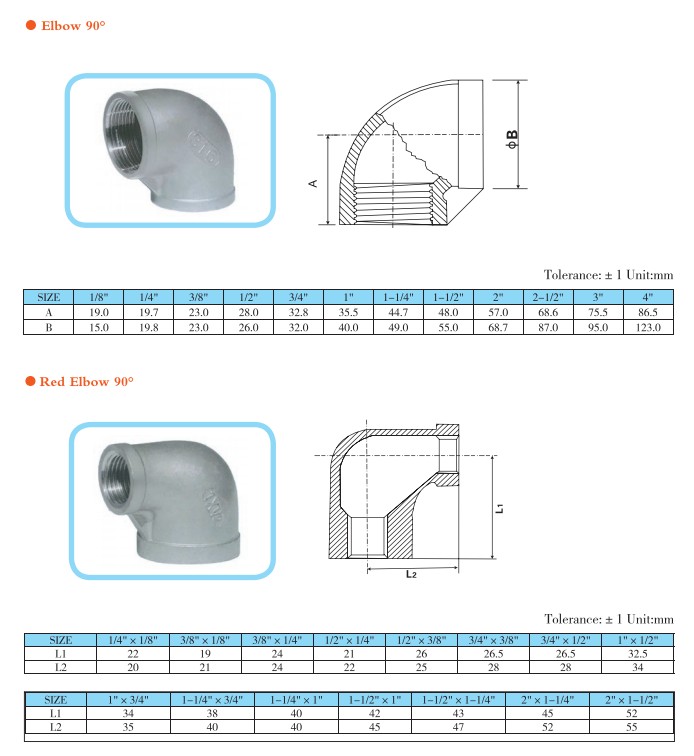 螺紋彎頭(又名絲扣彎頭)在管路系統中是改變管路方向的管件。按角度分,有45°及90°,另外根據工程需要還包括60°等其他非正常角度彎頭